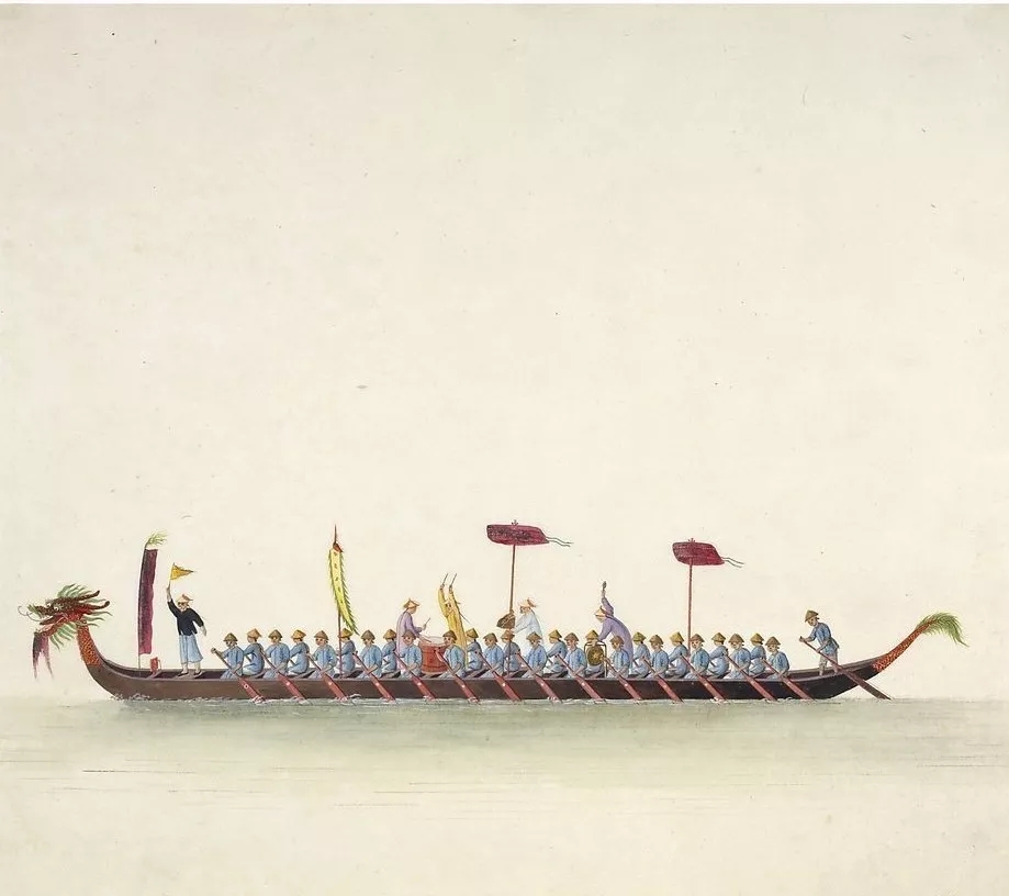 于是,之后每年五月五日人們便劃龍舟以紀念之。借劃龍舟驅(qū)散江中之魚,以免魚兒吃掉屈原的身體。