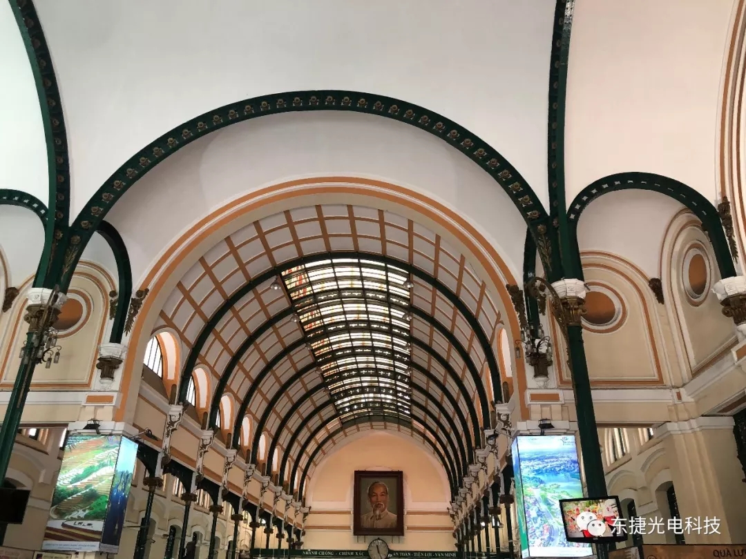 最后一站是位于胡志明市中心的中央郵局,這是一座法國殖民統(tǒng)治時期留下的舊建筑。郵局始建于1886年,由設計巴黎埃菲爾鐵塔的法國建筑師設計,擁有一百多年的歷史,因此中央郵局又名百年郵局。走進郵局,目光所及的拱頂、花窗、柜臺、吊燈、電話間、郵筒等等,都散發(fā)著濃郁的歐洲古典氣息。目前,這座郵局也已被改造成了發(fā)送明信片的指定地點,同時也是專賣越南紀念品的綜合市場。