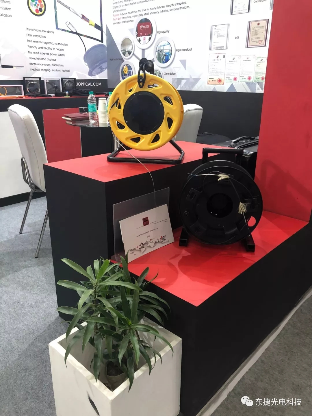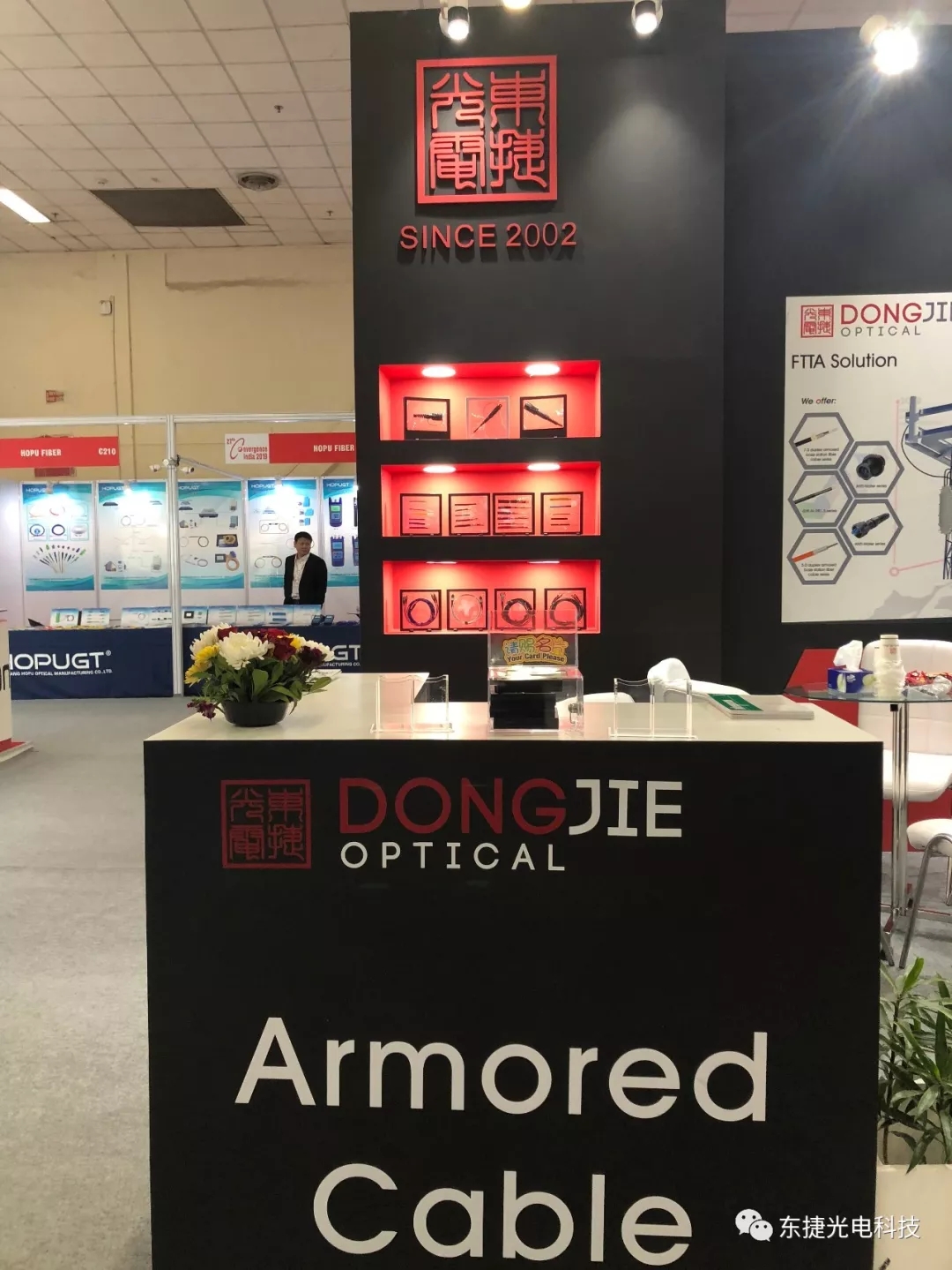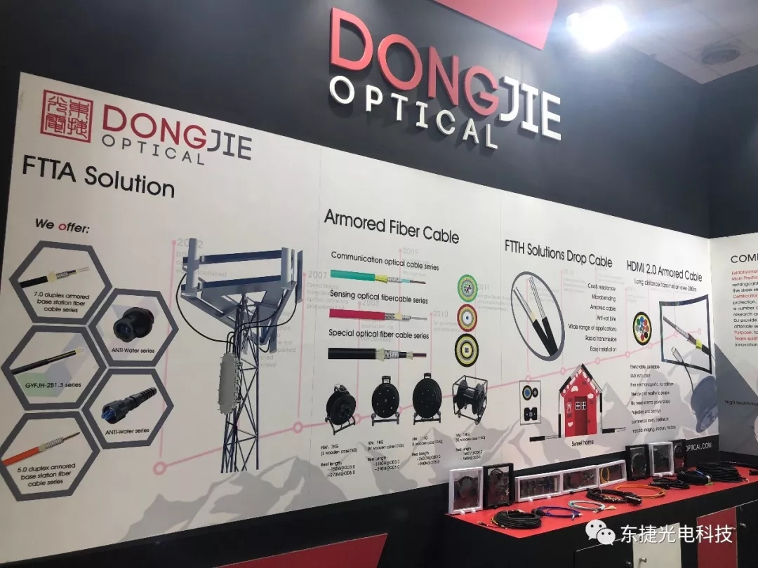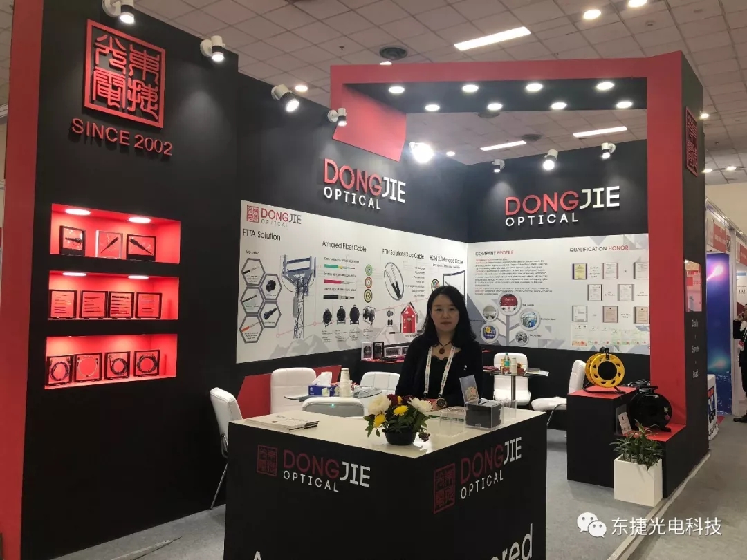 東捷光電作為鎧裝光纜領(lǐng)先制造商,攜最新FTTA連接器及光纜解決方案、HDMI、FTTH解決方案亮相2019年印度通信展展會現(xiàn)場,向全球觀眾全面展示了東捷鎧裝技術(shù),這次展會我公司劉總攜帶專業(yè)技術(shù)人員為大家答疑解惑。